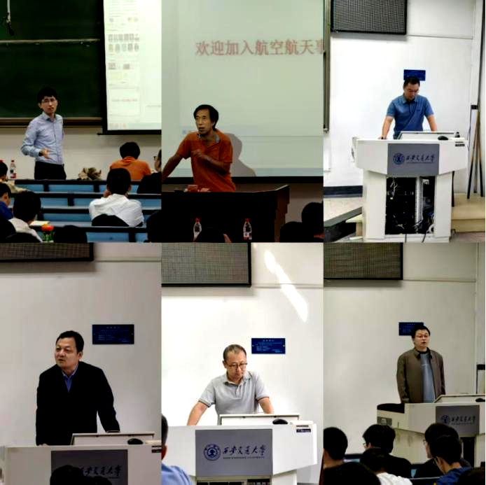 副院长张虎,空天工程系主任雷蒋、副主任孟雪广,导师代表周进雄教授、刘振教授、孙剑副教授、左逢源副教授出席活动。张虎谈及现代航天事业的发展,指出专业知识学习将积极促进高质量就业,对培养学生独立思考和自主学习能力具有重大意义。他还指出,兴趣在大学生活中起到重要引导作用。雷蒋着眼于航天事业的历史演变和专业荣誉,介绍了学院“五个一流”以及专业课程设置情况,阐述了空天工程系对社会的重要贡献。孟雪广介绍了飞设、飞动等专业应用的现代科技成果。孙剑展示了飞设及飞动专业的技术优势和研究基础。左逢源介绍了专业学习的科学方法以及科学技术的应用场景。周进雄针对学生提出的“如何发现自身兴趣”、“航天专业书籍阅读”等问题进行了详尽解答,并期望学校的先进设施和图书馆的丰富资源能为学生提供更优质的学习体验和发展机遇。
