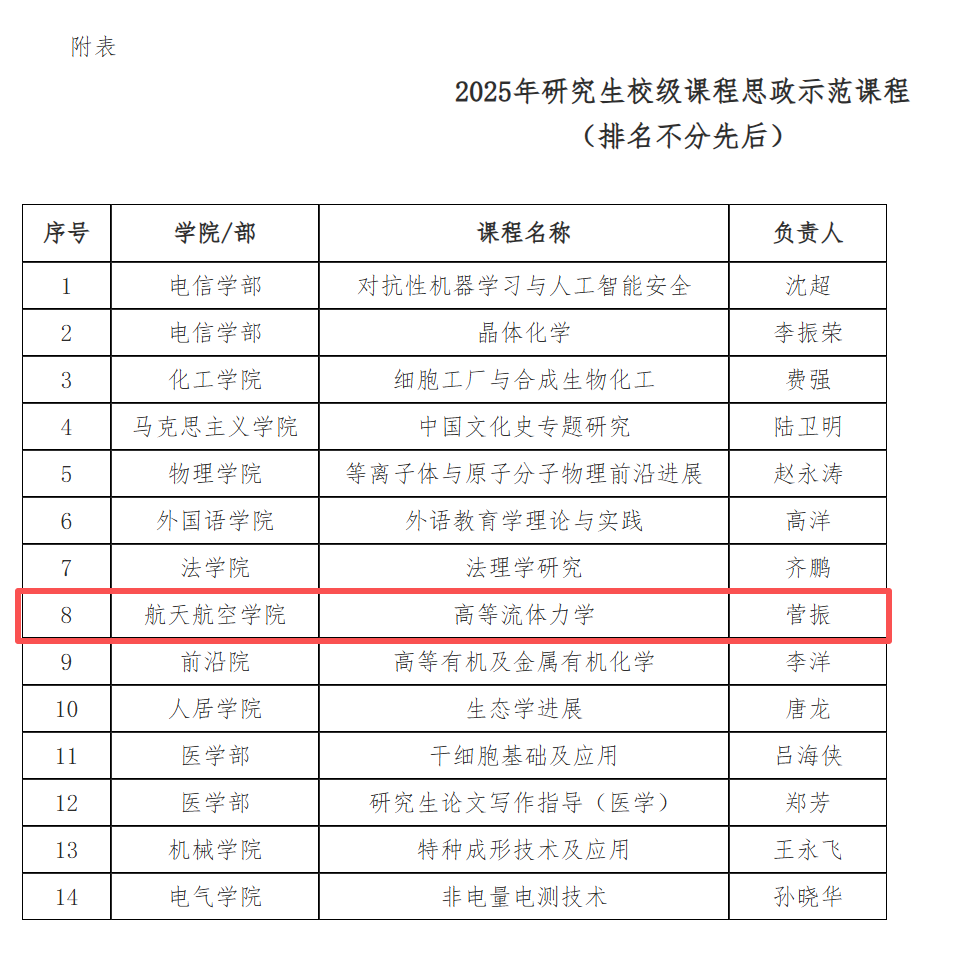 菅振老师凭借《高等流体力学》课程建设的突出成果,斩获校级双项荣誉。其教学案例《"理论-科研-工程"三位一体的〈高等流体力学〉课程教学实践探索》获评"2025年校级专业学位研究生优秀教学案例",同时该课程成功入选"研究生校级课程思政示范课程",彰显了 soul