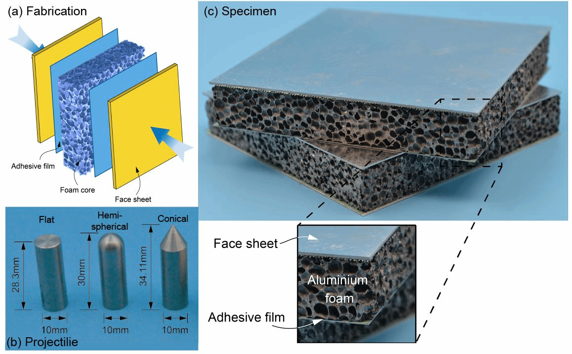 防护装甲是现代武器系统中的重要组成部分,先进的装甲防护技术可有效提高人员和设备的战场生存能力。装甲防护技术的发展构成了一部内容丰富的“矛”和“盾”相互竞争的历史,研究“盾”的防护原理的同时还需研究“矛”的侵彻机理。三明治复合结构的显著吸引力是质轻而刚硬,且构成芯材和表板具有很强的可设计性,是一种典型的复合防护装甲结构;金属泡沫材料具有高比刚度、高比强度及诸多独特的性能,具有很高的冲击吸能特性,是一种极具潜力的冲击缓冲材料,在冲击防护领域具有重要应用价值。