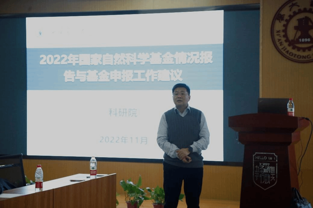 刘永忠副院长首先介绍了2022年学校和学院基金申请、资助情况,以及2023年申报国家自然科学基金新政策。同时还梳理了学院在“十三五”期间基金资助情况,肯定了学院“十三五”期间基金资助率持续保持学校前列,尤其是2022年优秀青年基金项目学院一次获得3项资助,全校第一的优异成绩,但同时也指出了学院2022年在面上基金、基金申报种类等方面资助情况不胜理想的不足。随后,他鼓励大家要有信心,挫折只是暂时的,要关注国家重大战略需求,开展有组织的科研活动。对学院在“十四五”期间基金项目申报提出了努力方向,希望学院在“十四五”期间,能够在创新群体、重大项目、人才项目取得更大的突破。