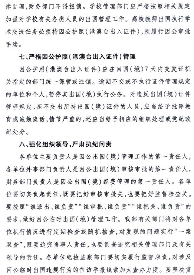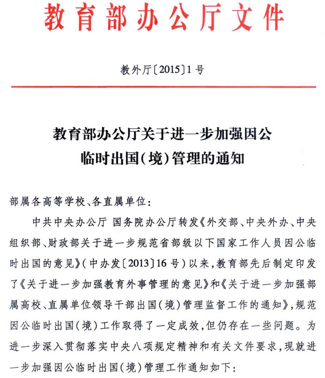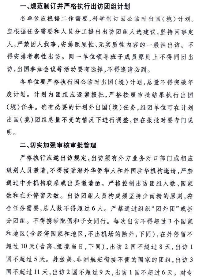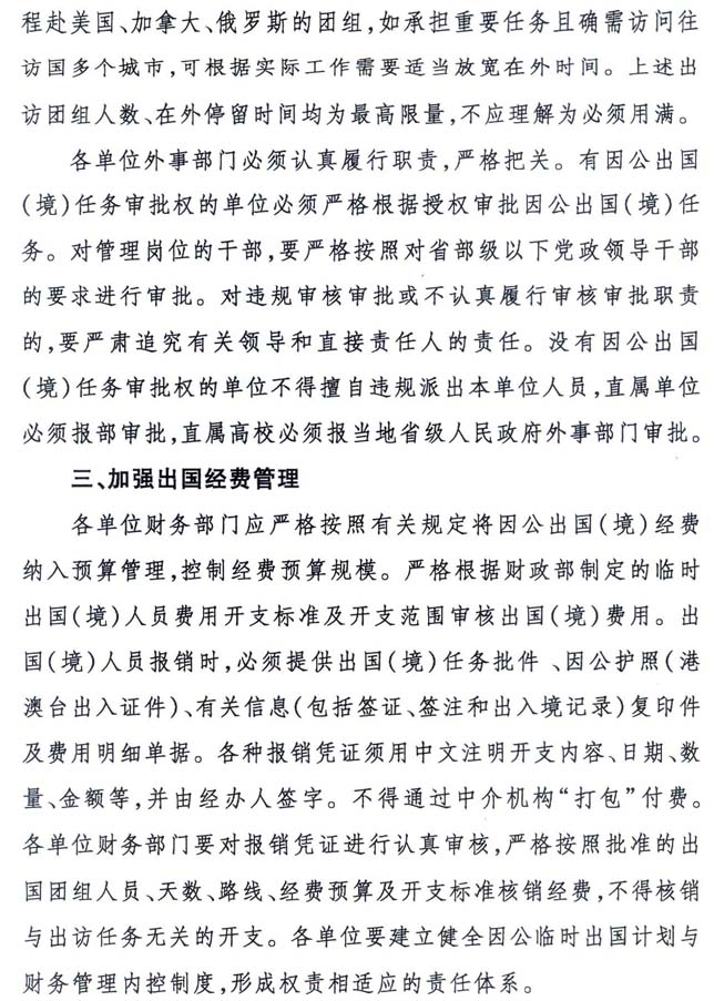 关于进一步加强因公临时出国(境)管理的通知